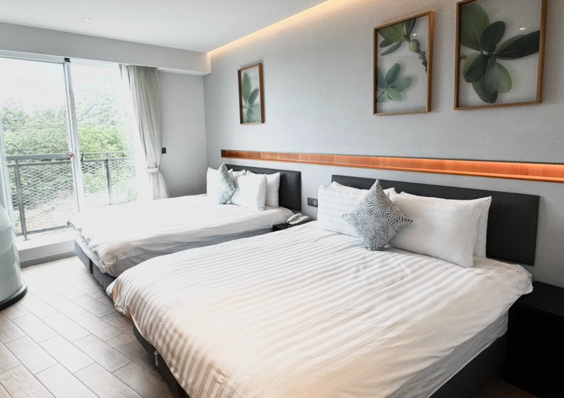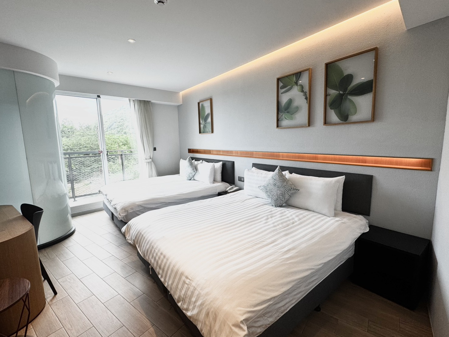 原生材的設計風格,簡約舒適。伴著海浪聲入眠。